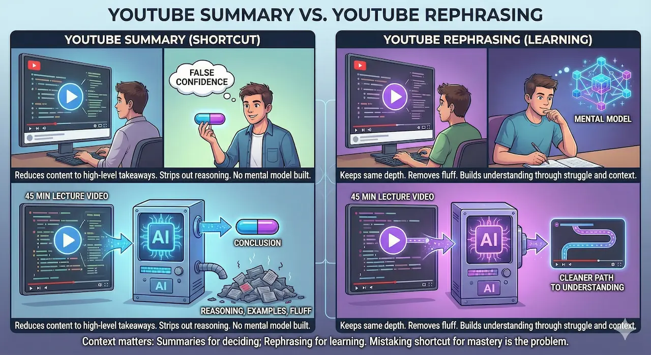 YouTube summaries and the illusion of learning
