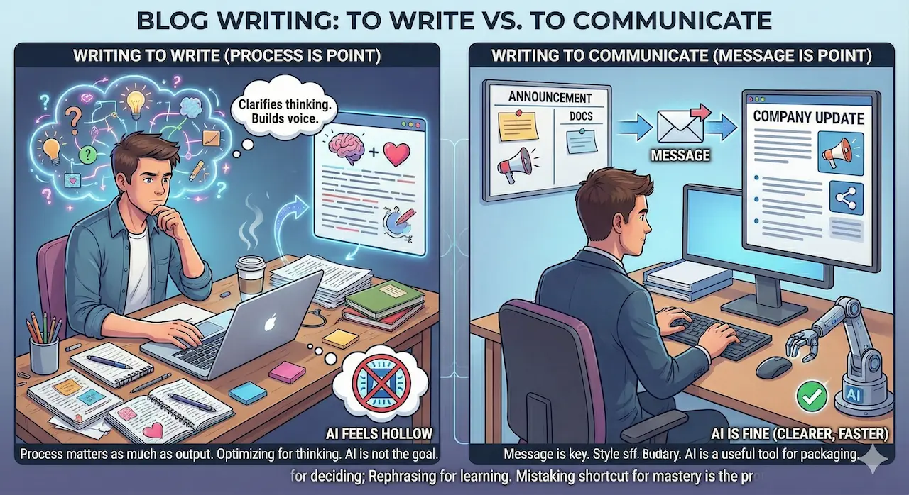 There are two very different reasons people write blog posts, and confusing them leads to bad takes about AI-generated content.